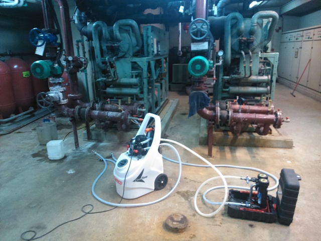 Χημικοί καθαρισμοί σε κοντέσερ πύργων ψύξης.